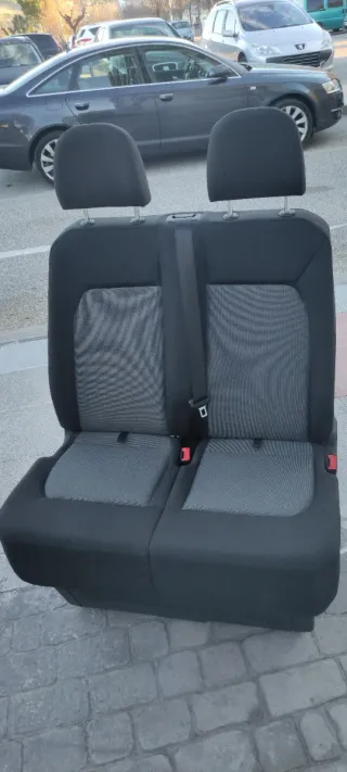 Asiento de copiloto doble para Volkswagen Crafter 2017 en adelante. Tapicería en tela en muy buen estado. Preferible recogida en mano en Ibi, Alicante. Para envíos el precio sube.