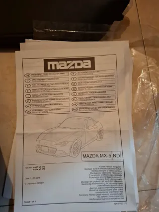 Conjunto de piezas de recambio para el interior de un Mazda MX-5. Incluye varios componentes de tapicería y guarnecidos. - Piezas de color negro. - Incluye manual de instrucciones. Precio debatible