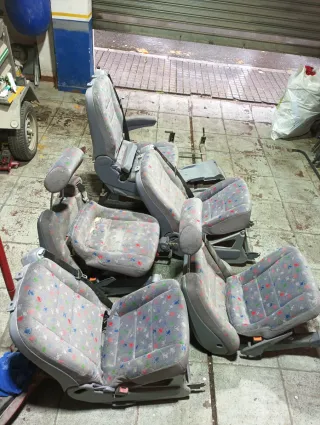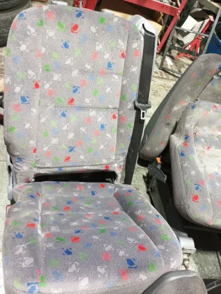 Conjunto de asientos de tela para Mercedes Vito W638. Los asientos tienen un diseño con pequeños motivos de colores. - Tapicería de tela. - Diseño con motivos de colores. Nunca han estado puestos ya que la tuve camperizada no sé ni cómo van colocado preguntar las dudas 2