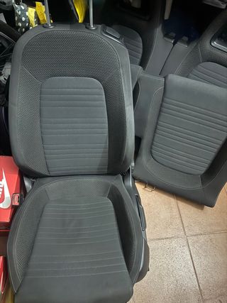 Conjunto de asientos Volkswagen Scirocco III. Tapicería de tela en color negro, muy buen estado, solo tienen un pequeño agujero los traseros que se aprecia en fotos. - Diseño deportivo con costuras en contraste. - Reposacabezas integrados. - Tejido texturizado en el respaldo. Posibilidad de mas fotos o videos por whats App. Escucho ofertas NO MAREANTES. Posibilidad de acercarlos. NO SE VENDEN POR SEPARADO!