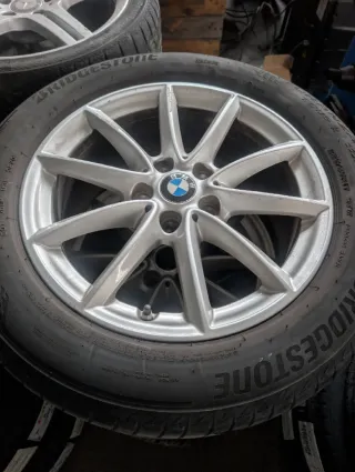 Juego de llantas BMW con neumáticos tornillería 5x112 - Diseño deportivo de 5 radios dobles. - Acabado plateado. - Incluye neumáticos al 90% 225/55R17 97W brigestone 225/55R17 101W kormoran 4 estaciones - válvulas tpms