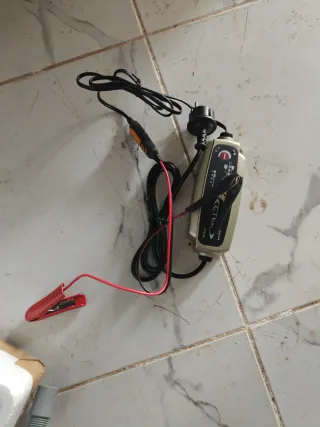 Cargador de baterías Ctek en color gris y negro. - Modelo: MXS 5.0. - Voltaje: 12V. - Amperaje: 5A. - Incluye pinzas de conexión.