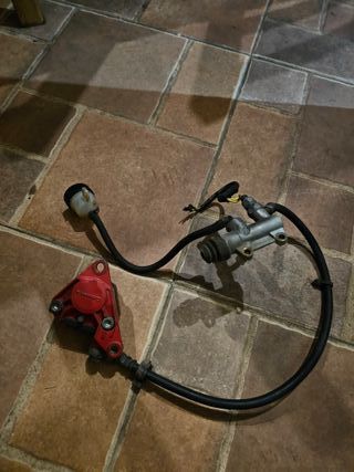 Conjunto de freno trasero para Aprilia RS 50 avispa - Pinza de freno Brembo roja. - Bomba de freno. - Latiguillo de freno. Esta en buen estado Dispongo de freno delantero completo 50e...envio por mensajeria rapida