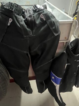 Chaqueta de cordura para mujer, ideal para motociclismo. Diseñada para ofrecer comodidad y protección. con protecciones y acolchado interior desmontable - Talla de chaqueta: 36. - Talla de pantalón: M. - Diseño con detalles en azul y blanco. vendo por quedarse pequeña usada 2 veces