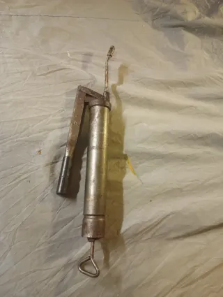 Herramienta manual para aplicar grasa o aceite. - Cuerpo metálico. - Palanca de accionamiento. - Boquilla para aplicación.