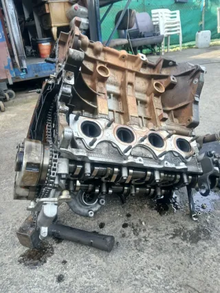 Motor de coche para piezas o reparación. Se vende tal como se ve en las imágenes. - Bloque motor. - Componentes internos visibles. - Cadena de distribución.