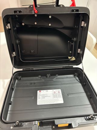 Maleta lateral original BMW para modelos F750GS, F850GS y F800GS. Diseñada para un ajuste perfecto y durabilidad. - Material: Plástico ABS resistente. - Color: Negro. - Capacidad: 25 litros aprox.