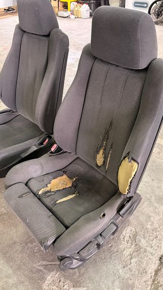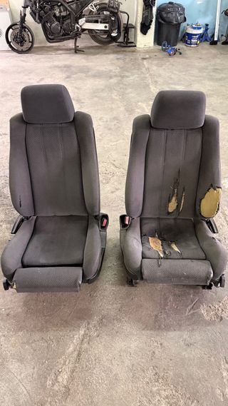 Juego de asientos delanteros M-Technik para BMW E34. Tapicería de tela gris. - Asientos delanteros. - Tapicería de tela. - Color gris. - Uno está rota la tela, el otro está casi perfecto.
