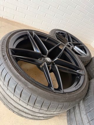 Llantas FORJADAS Llagos Design 19/20" + Michelin PS4S - Porsche 997 | 718 Ultraligeras, Recién pintadas en negro satinado Porsche. Medidas: 19" ET48 (delante) 20" ET54 (detrás) Peso real: 8,2 kg / 10,5 kg Mucho más ligeras que OEM, se nota en conducción. Neumáticos Michelin Pilot Sport 4S al 70% 235/35/19 305/25/20 Sin golpes ni fisuras Perfectamente equilibradas Anterior mente montadas en porsche 997 Montaje directo en Porsche 997 y 718 Cayman / Boxster