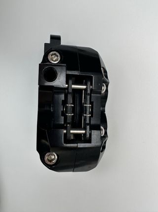 Pinza de freno Pit Bike de anclaje radial. Incluido soporte a horquilla y pastillas de freno. - Fabricada en aluminio de alta calidad. - Acabado en color negro mate.
