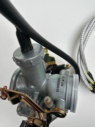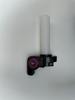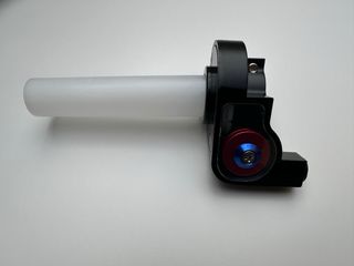 Puño de acelerador rápido para pit bike. Diseñado para mejorar la respuesta del acelerador. - Cuerpo principal en color negro. - Detalle de tornillo y arandelas en azul y rojo.