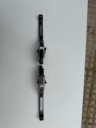 Manetas abatibles y ajustables de aluminio para Hypermotard. Diseño moderno y funcional. - Material: Aluminio. - Color: Negro y plateado.