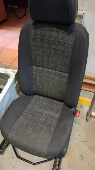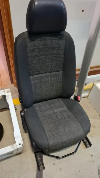 Asiento de copiloto para Mercedes Sprinter modelo 906, fabricado entre 2007 y 2018. Tapicería en tela. - Reposacabezas integrado. - Sistema de anclaje a raíl. - Hebilla de cinturón de seguridad visible.