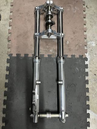Horquilla delantera Showa para Harley Davidson,modelo G5C0-L (SA-2) en muy buena condición,desconozco si tiene revision reciente hecha,pero no tiene signos de fuga ninguna,las barras inmaculadas en la zona guardapolvos,se vende con sus tijas y copas con rodamientos,no se medida largura de barras,parecen estándar,son de 39mm de diametro,con algunos signos de uso muy leves y din importancia,el aluminio esta bastante bien conservado en las botellas pero una pulidita no le vendria mal,sin tiempo ando...para mas por privado Sportster,ironhead,shovel,panhead,bobber,xlh,flh...