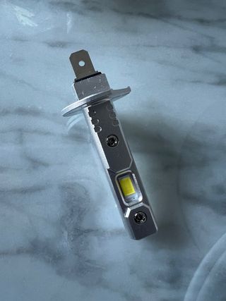 Luces LED para faros de coche, diseñadas para mejorar la visibilidad. - Cuerpo de aluminio plateado. - Chip LED amarillo. - Conector metálico.