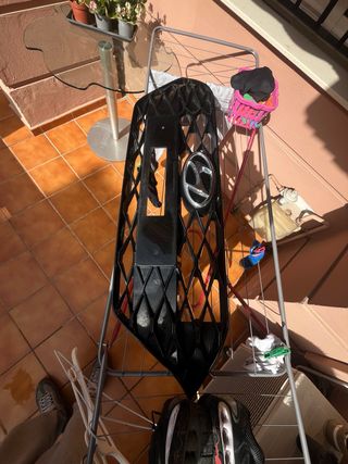 Patinete eléctrico de color negro, ideal para desplazamientos urbanos. Usado pero en buenas condiciones. Le falta la luz trasera - Diseño plegable para facilitar su transporte. - Cargador - Ruedas resistentes para un paseo suave. - Manillar ajustable en altura.