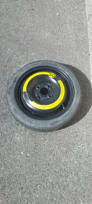 Rueda de repuesto nueva tipo galleta para Ford cuatro tornillos,era de un Focus.4x108, también grupo PSA Peugeot y Citroën.Neumatico Michelin. - Llanta de acero. - Neumático de emergencia.