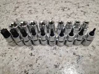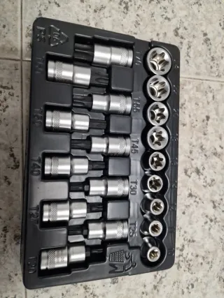 Juego de llaves de vaso de TORX E 10 hasta E 24 Y PUNTAS TORX de T20 hasta T70 Nuevas a estrenar. Lo que se ve en las fotos.