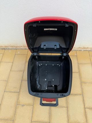 Top case original de BMW para moto, en buen estado. - Capacidad para llevar objetos de viaje. - Material metálico resistente. - Incluye cierres y sistema de anclaje.