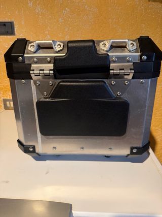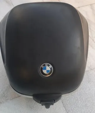 Se vende top case aluminio negro original bmw vale para más modelos lo pone en la foto, se vende por venta de moto.con respaldo y los 2 bombines.