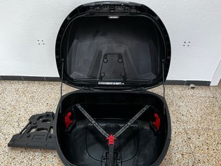 Baúl top case de la marca SHAD, ideal para motos y scooters. Gran capacidad, medidas en fotos . Con señales de uso pero cierra y encaja perfectamente. Falta una de las 3 lengüetas de fijación a la base pero queda anclado sólido .Incluyo parrilla de fijación sin tornillería. Las fotos son la mejor descripción, míralas bien. No es negociable.