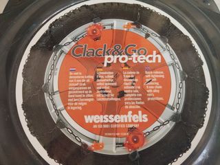Cadenas para la nieve de 9 mm de la marca Weissenfels, modelo Clack&Go Pro-tech. - Desmontaje rápido. - Autoajustables y autocentrantes. - Incluyen protecciones para llantas de aleación.