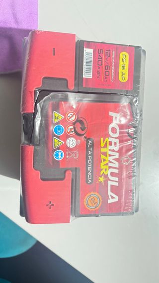 Batería de coche Formula Star, modelo FS-16 AP. - Voltaje: 12V - Capacidad: 60Ah - Corriente de arranque en frío (EN): 540A - Libre mantenimiento - Alta potencia
