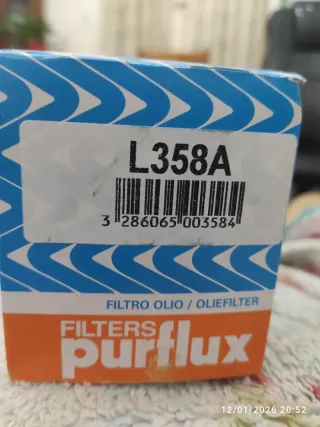 Filtro de aceite Purflux L358A. - Modelo: L358A - Marca: Purflux - Tipo: Filtro de aceite / Oliefilter - Código de barras: 3 286065 003584