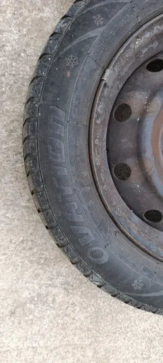 Se venden dos neumáticos en buen estado, medida 185 65 15 de invierno con llantas de chapa de Peugeot Citroen