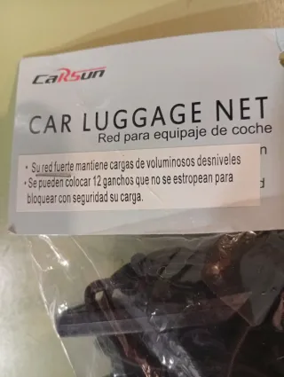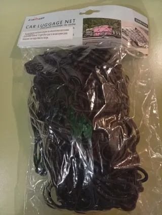 Red para asegurar equipaje en el coche. Mantiene cargas voluminosas y desniveles. • Car Luggage Net. • Para interior del vehículo, maletero, como exterior, en el techo ( baca ) o en el remolque, • Tamaño: 80 x 120 cm en reposo sin estirar. • Incluye 12 ganchos para una sujeción segura.