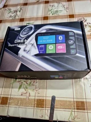 Receptor de radio para coche con pantalla LCD a color. - Soporta DAB+ y slide show. - Conectividad Bluetooth (BT). - Ranura para tarjeta SD. - Botones de control M, TX, y de navegación.