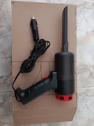 Aspirador portátil para coche con conexión al mechero. - Potente y compacto - Color negro y detalles en rojo. - Incluye cable de alimentación para el mechero del coche.