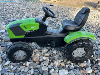 Tractor de pedales con diseño inspirado en el modelo Deutz-Fahr 5120. Ideal para que los más pequeños disfruten al aire libre. - Color verde y negro. - Asiento ajustable. - Ruedas grandes para todo tipo de terreno.