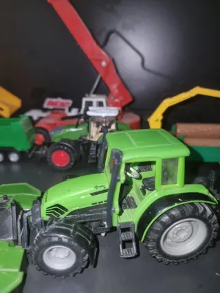 Réplica detallada de un tractor Deutz Fahr a escala 1/32. Ideal para coleccionistas o para juegos. - Color verde y gris. - Neumáticos grandes y realistas. - Cabina detallada. Si necesitas mas fotos pedir.