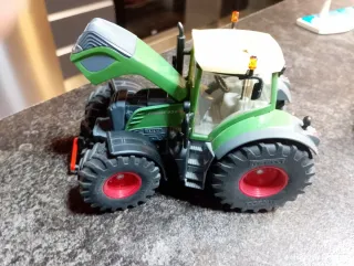 Tractor de juguete Fendt con detalles realistas y función de sonido. - Diseño verde y blanco característico de Fendt. - Ruedas grandes y robustas. - Cabina detallada con luces y parabrisas.