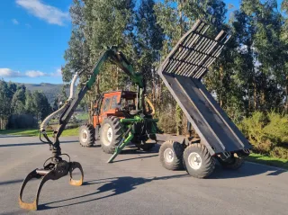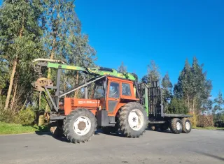 Se vende equipo forestal, tractor Fiat 100-90 S DT con grua Toimil T5000L, cabrestante Talleres Coruñeses hidraulico y remolque Toimil RBT-1. Ruedas forestales, homologado y con ITV. Más información por privado.