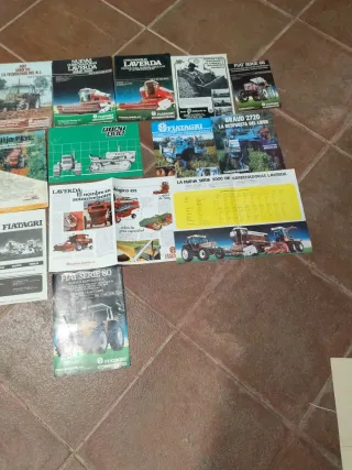 Colección de folletos antiguos de maquinaria agrícola Fiatagri. - Incluye catálogos de tractores y cosechadoras. - Modelos como Fiat Serie 80, Fiat Serie 66, Laverda Serie 3000 y Braud 2720. - Textos en español.