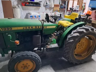 Tractor John Deere modelo 1030 en color verde. - Ruedas delanteras y traseras. - Asiento amarillo. - Luces delanteras.