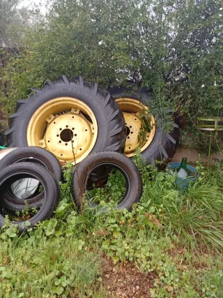 Se venden ruedas estrechas para tractor. Marca Michelin medidas 12.4-38 Ideales para John Deere serie 35 , 40 o 50 para más información contactar al 657174009 - Color amarillo. - Llanta de metal. - Neumático de goma.