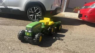 Triciclo infantil con diseño de tractor John Deere. Es superresistente, aguanta mucho peso y es muy divertido y estable para los niños.