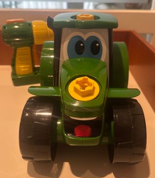 Tractor de juguete para niños John Deere que se monta y desmonta fácilmente gracias a su taladro eléctrico Este tractor de juguete está formado por 13 piezas y incluye 1 taladro eléctrico con 2 brocas. Necesita 2 pilas LR6 AA Las piezas que forman este tractor infantil de juguete son grandes, por lo que son ideales para que las manipulen los niños con sus pequeñas manos. Está indicado para niños desde los 18 meses
