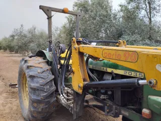 Tractor John Deere 2035 con pala frontal tenias Serie 90. - Cargador frontal amarillo. - Neumáticos delanteros nuevos