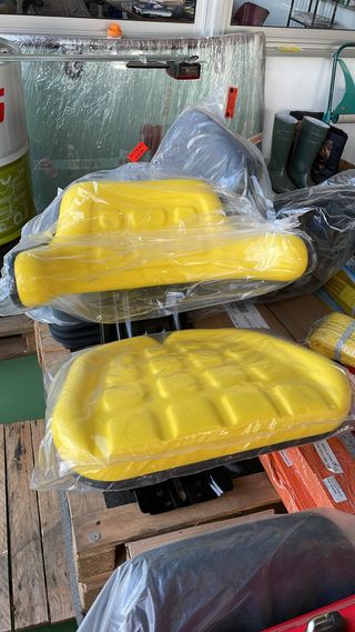 Asiento de tractor John Deere de color amarillo. En PVC - Diseño ergonómico. - Material resistente.