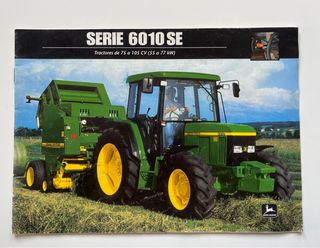 Catálogo original de la serie de tractores John Deere 6010 SE. - Cubre modelos de 75 a 105 CV (55 a 77 kW). - Incluye imágenes del tractor y detalles de la cabina.