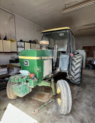 Tractor John Deere modelo 1840. - Color verde. - Con pala. - Neumáticos delanteros y traseros. Venta tractor 1840 frutero con pala y vierga recién reparado embrague nuevo bomba de aceite nueva trasmisiones aceite y filtros todo revisado se transfiere con ITV al día tractor ideal para viña y olivos toma de fuerza totalmente revisada. Precio 8500 transferido abstenerse ofertas ridículas gente sería no cambios ni mareos. Se encuentra en Badajoz, Extremadura