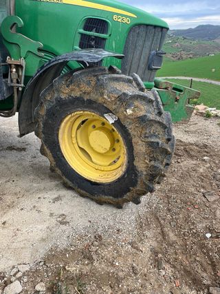 Tractor John Deere modelo 6230 con 6400 horas. ruedas delanteras al 95% montadas en enero de 2025 y traseras al 80% Se vende con anclajes de pala BMH posibilidad de vender con pala Solo ha trabajado en finca privada Año 2009