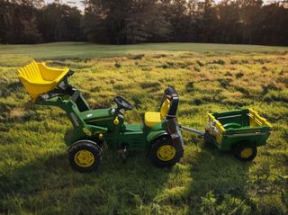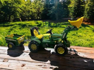 Tractor a pedales John Deere con pala y remolques