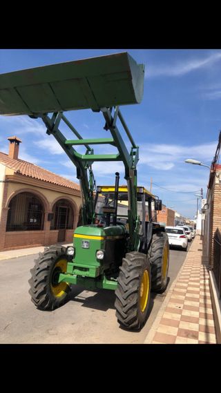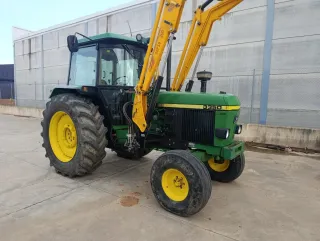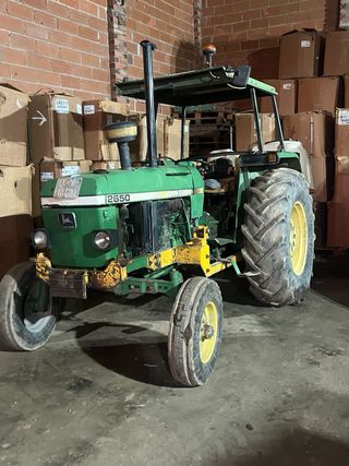 Vendo por Jubilación: Tractor John Deere 2850 en buen estado, listo para trabajar. Incluye pala frontal. Cazo de áridos y Cazo de cereales Equipo de motor con 3000h con factura Embrague con 2000 h aproximadamente 4 tomas hidráulica ITV al día Todavía se puede transferir - Modelo: John Deere 2850 - Color: Verde - Con pala frontal