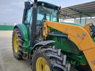 Tractor John Deere 6810 con pala Tenías B3 Serie 300. - Tractor reconocido por su fiabilidad, potencia y comodidad. 135 CV de potencia. Doble tracción y aire acondicionado. Ideal para trabajos agrícolas y de carga. - Buen estado de mecánica, se vende por cese de actividad. ITV ok hasta Junio 2026. - Equipado con pala Tenías B3 Serie 300 con dos cazos, el cazo original y otro cazo tipo garra. Enganche rápido y anclajes. - 10.000 horas. - PowerQuad, 40km/h. 1,2,3,4 grupos automático y 5 marchas A,B,C,D y E manual. - Inversor a la izquierda. Solo gente interesada