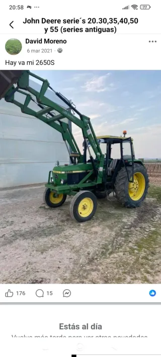 Se vende tractor John Deere 2650 en buen estado, listo para trabajar. Mas info por privado - Color verde y amarillo. - Incluye pala frontal. - Neumáticos grandes.